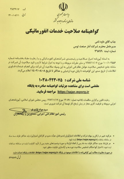 دارای گواهی رتبه بندی و احراز صلاحیت شرکت های انفورماتیکی